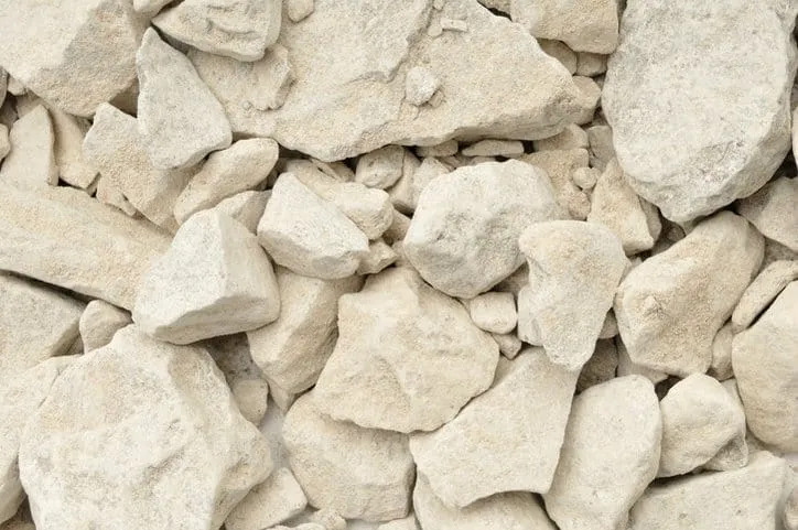 Lime, also referred to as Quicklime (calcium oxide – CaO). To make it, limestone (CaCO3) is broken up and shoveled into a kiln, which is heated to very high temperatures. The high temperatures release carbon dioxide (CO2) from the stone, turning it into calcium oxide.